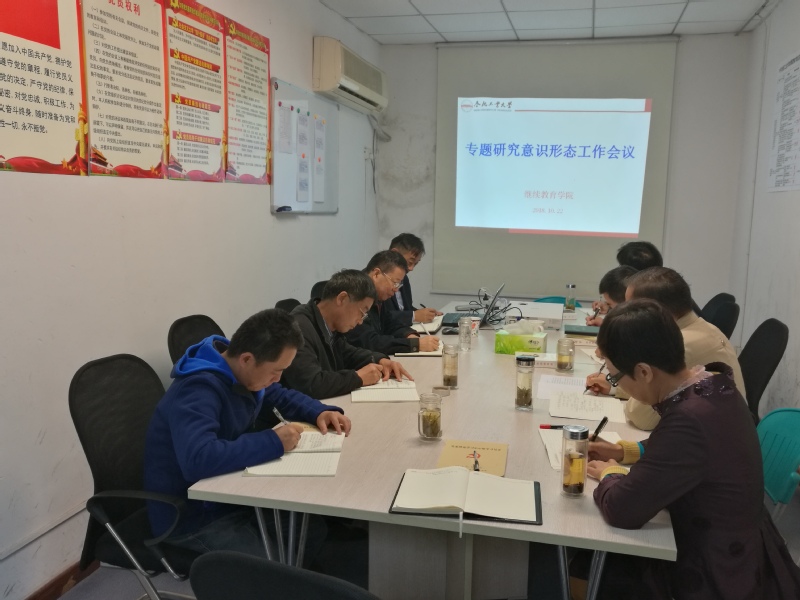 10月22日下午,学院党总支在学院会议室召开了本学期学院意识形态领域专题研讨会,会议由党总支书记潘德江主持,学院党总支委员、党支部书记和科级以上干部参加了研讨会。